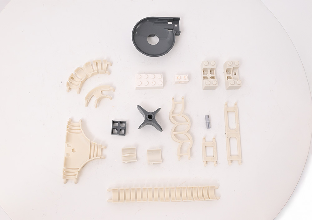 他のブロックにはない、レール状のブロックと自由に折り曲げができるレールブロックも付属します。