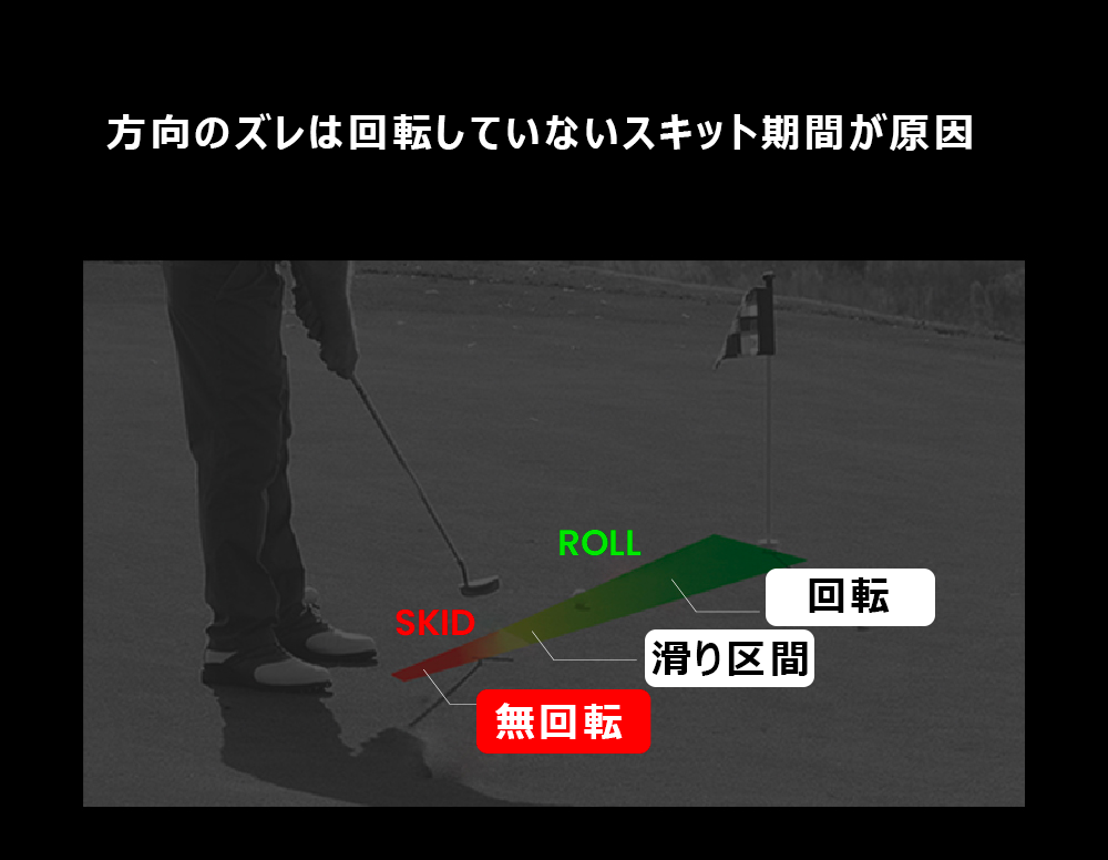 パターフェイス面の摩擦はボールが自然に転がることを妨げます。