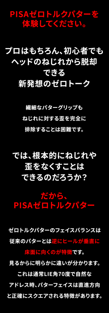 マイナスロフトを実用化したPISAパターは従来のパター概念を変えます。