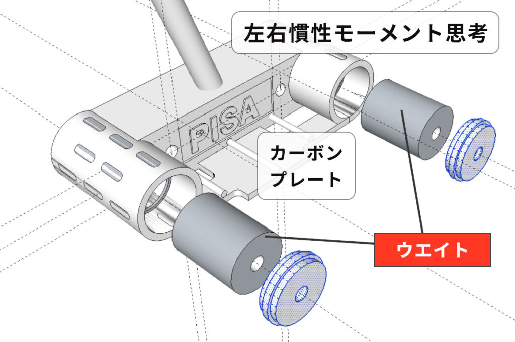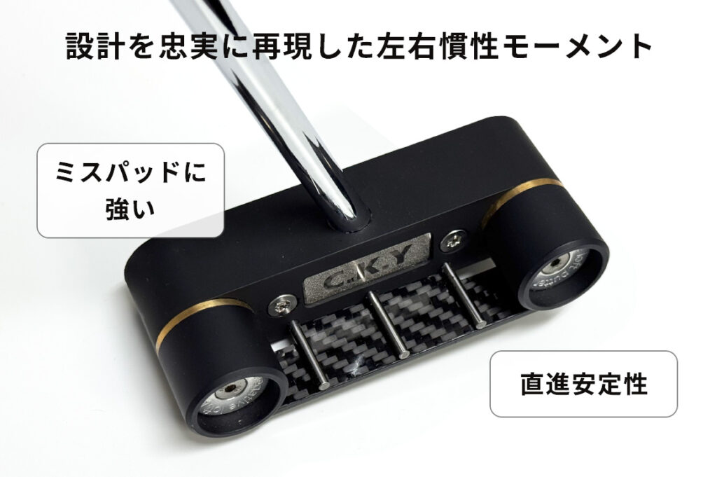 マレットタイプのように大型にすることなく、左右にウエイトを配置し、中心はカーボンで補強しながら軽量化しました。