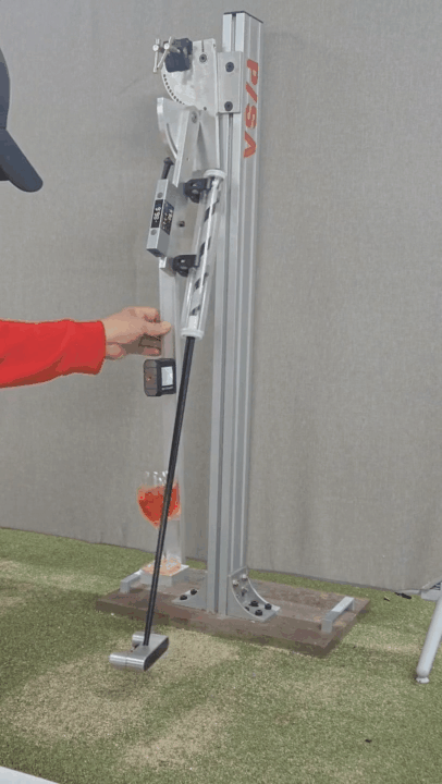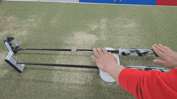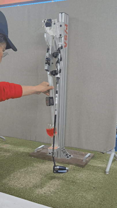 自由に回転するグリップを装着し、従来品のヘッドとゼロトルクパターのブレの違いを確認