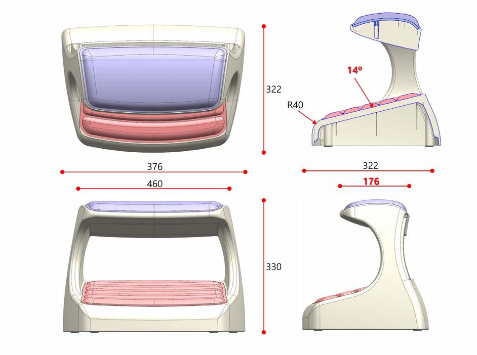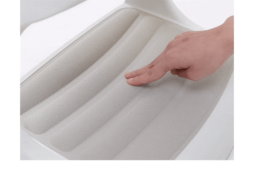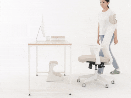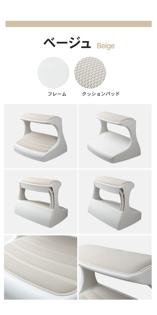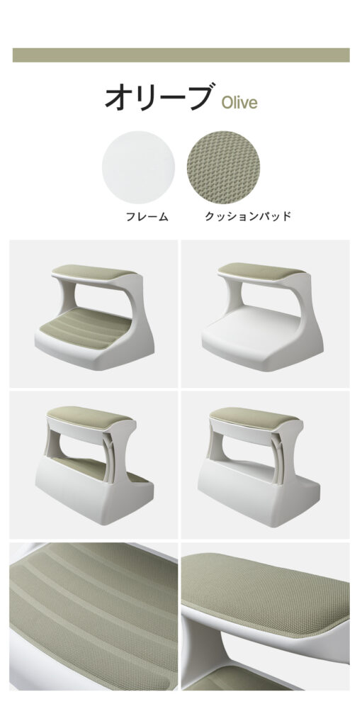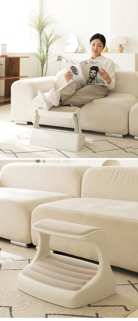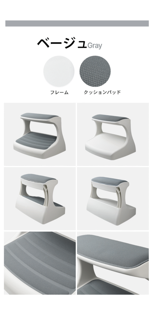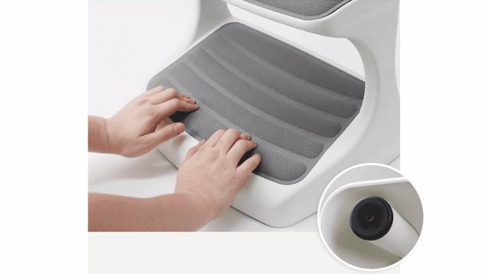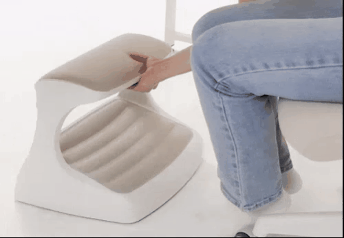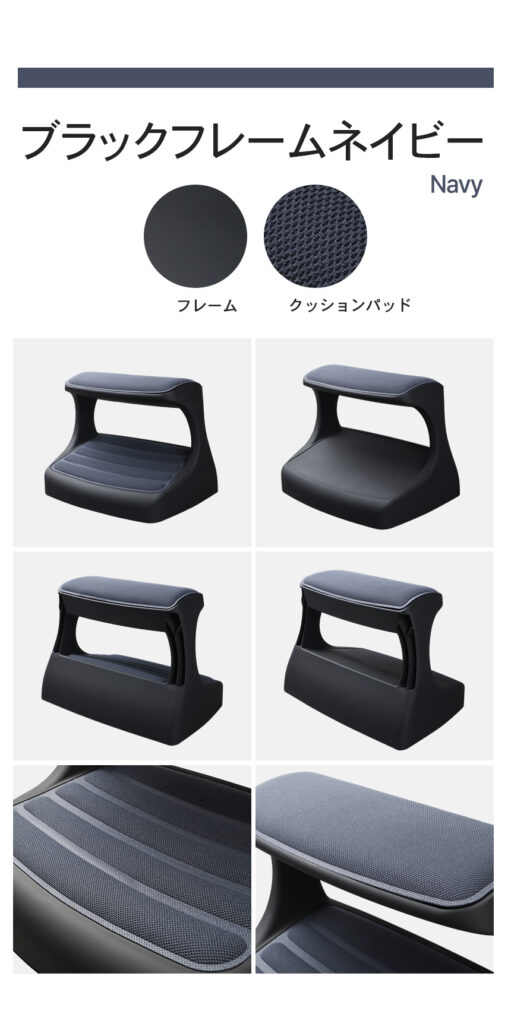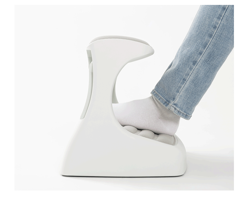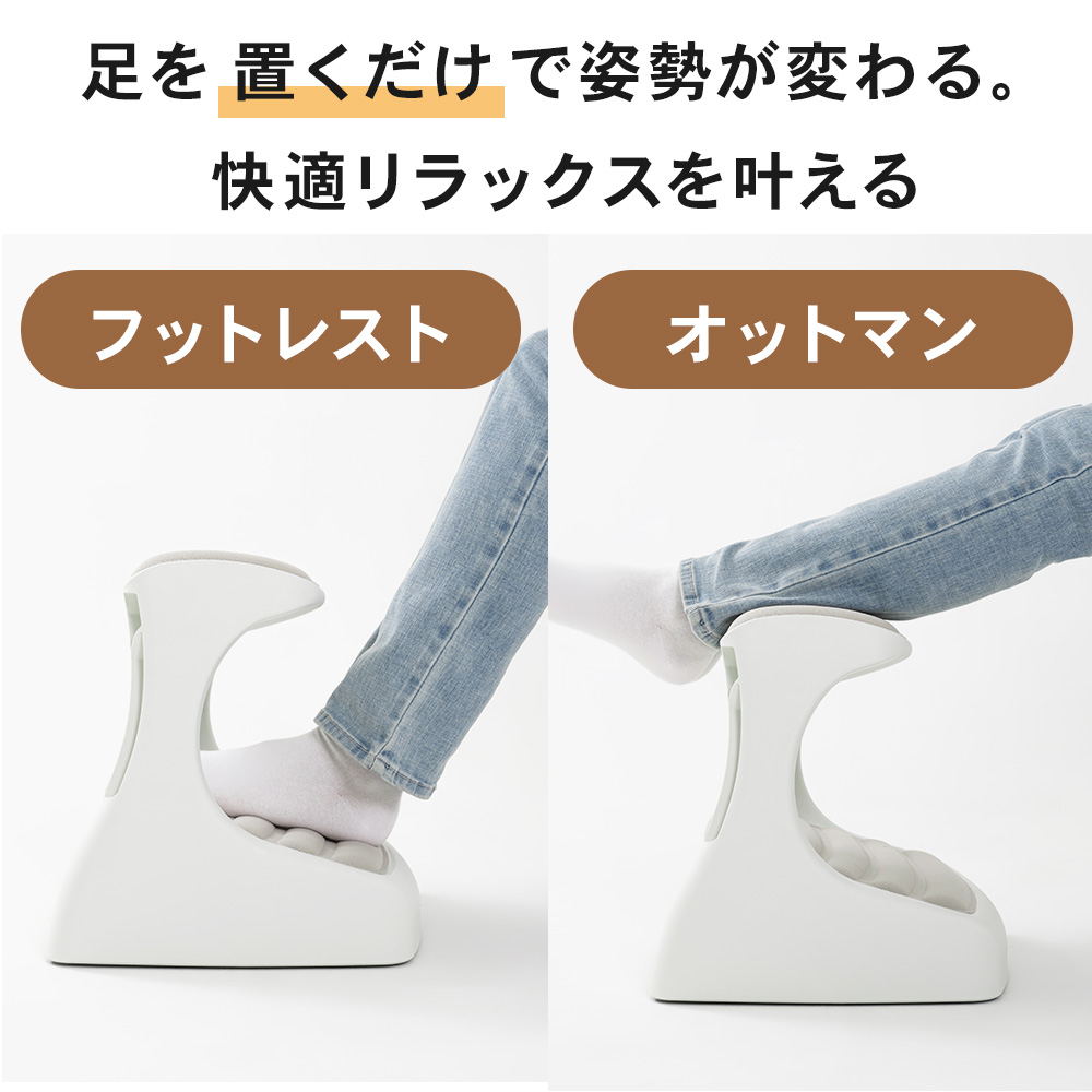 つま先がちょっと上げて足を置けば太ももの圧迫を解消して長時間の着座をサポートします。