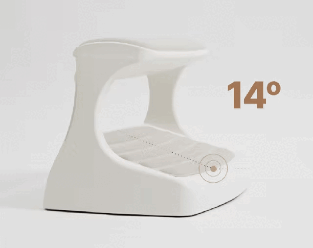 足をのせた時に心地いいと感じる角度を様々試して14度の角度を見つけ出しました。