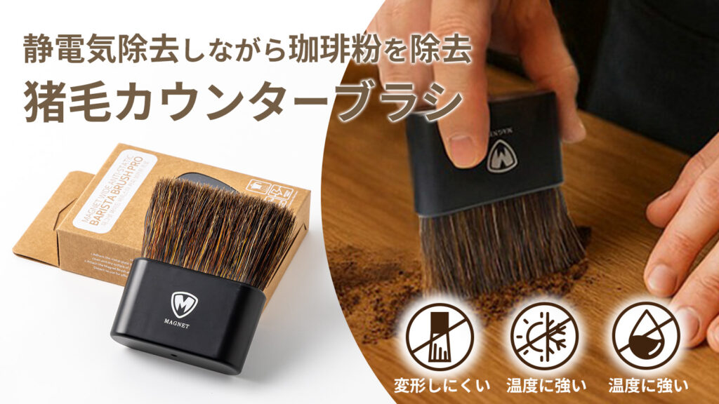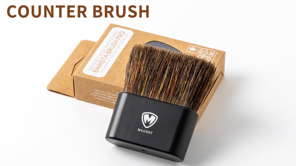 カウンターブラシは珈琲を扱うテーブルの清掃のために作られた専用ブラシですが、テーブルだけでなく、珈琲機器にもお使いいただけます。