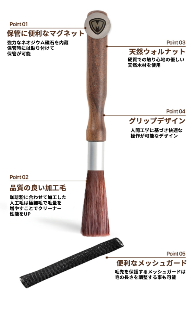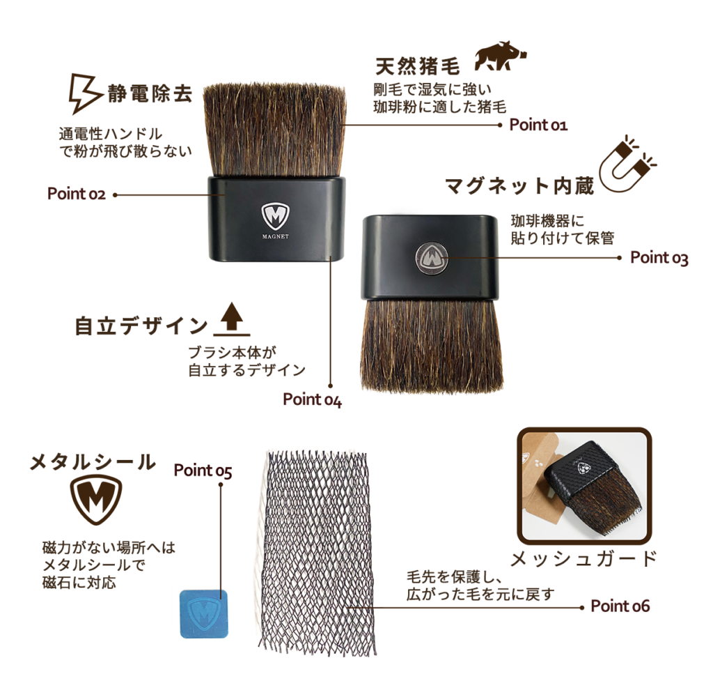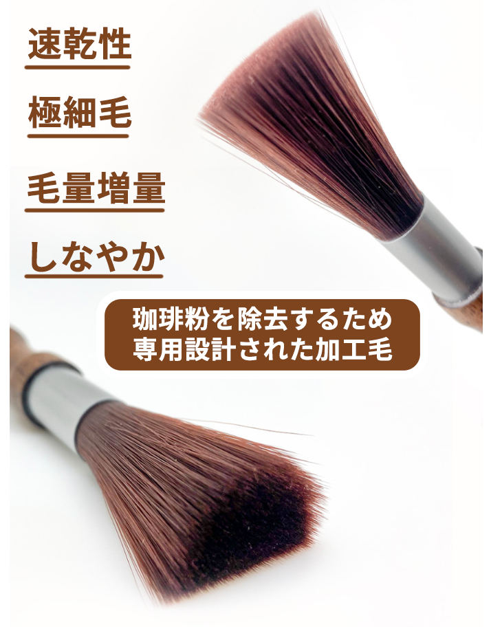 グラインダーやエスプレッソフィルターなどの清掃に特化したブラシ毛を開発いたしました。