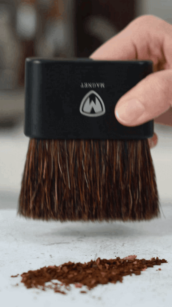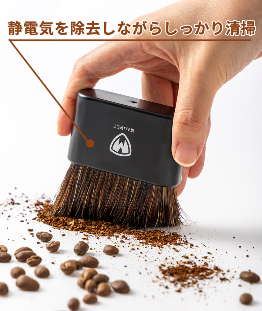 乾燥した時期の珈琲微粉は静電気を帯びたブラシで清掃するとなかなか綺麗にならないのがイライラにつながります。