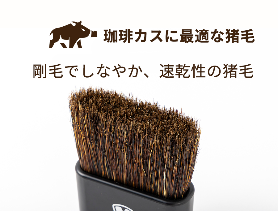 猪毛は剛毛でこびり付いた珈琲カスもしっかり除去できます。