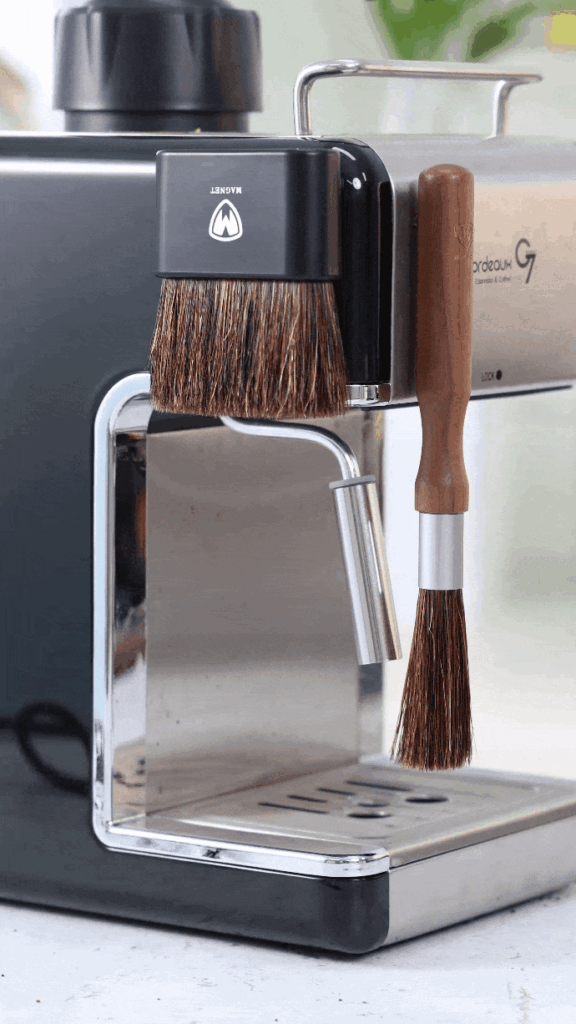 細かい人工毛は機器の隅々まで入り込み効率よく珈琲カスを掻きだします。
