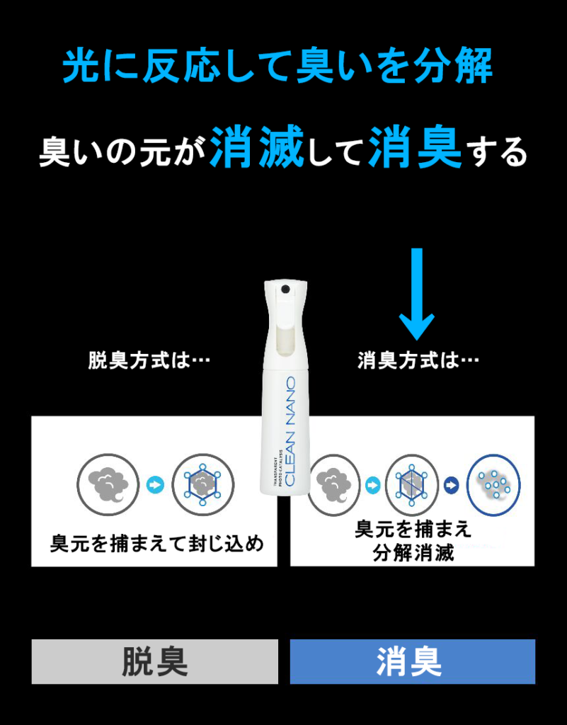 光触媒の消臭剤は脱臭方式ではなく、消臭方式です。