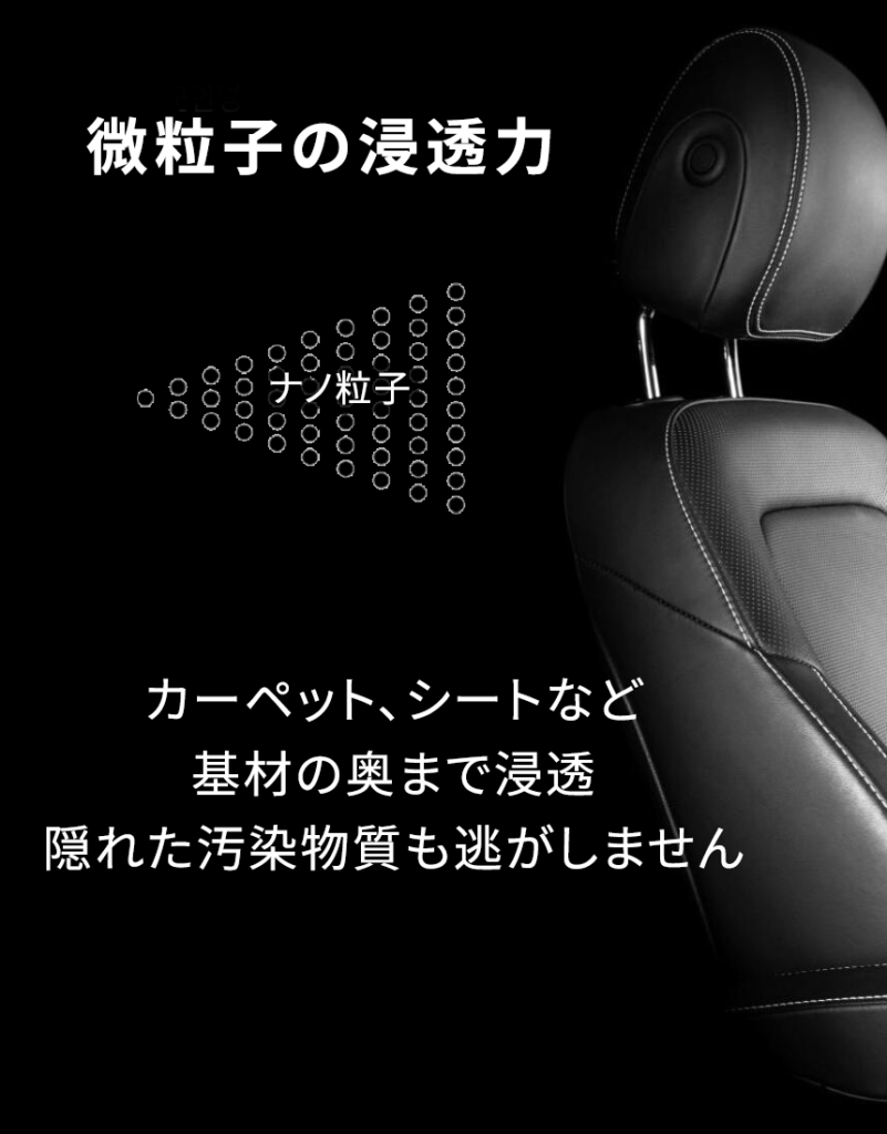 浸透力が強いのでシートなどの深い部分にまで浸透した有害物質にまで届いて分解します。