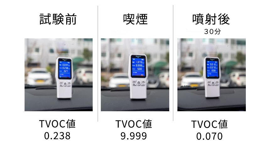 車内喫煙の空気清浄実験(自社調べ)