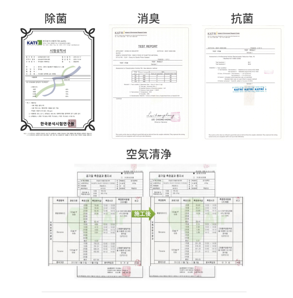 除菌、消臭、清浄などすべては試験にて試され、さらに実証実験の結果も良好な効果を得ています。